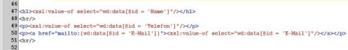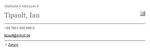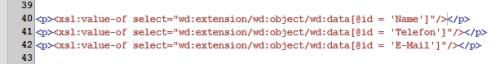 Nun soll noch in der Adressenübersicht die Felder nebeneinander stehen statt untereinander. Mirko meint nur: „Klick einfach auf Listendarstellung anpassen und entferne die p-Tags zwischen den Feldern“. Programmcode, pfui. OK, sieht aus wie einfaches HTML. Das sollte ich schaffen. Ah, da sind die Felder. Dann nehme ich die p-Tags mal raus. Speichern. 30 Sekunden. Hat auch funktioniert.