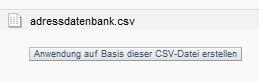 Aha, unter „Werkzeuge“ im Backend, da finde ich ihn, den Anwendungsgenerator. Eine CSV-Datei soll genügen, um eine komplette Anwendung zu erstellen. Ein Muster liegt zur Ansicht bei. Na, da bin ich mal gespannt. Ich lege also mal ´ne CSV-Datei von Hand an. 2 Minuten hat das an Zeit gebraucht.