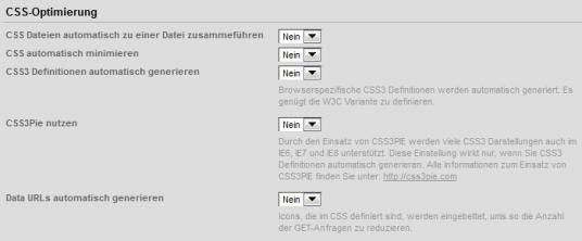 In der Weblication® BASE-Projektkonfiguration können Sie alle wichtigen CSS-Optimierungen durchführen.